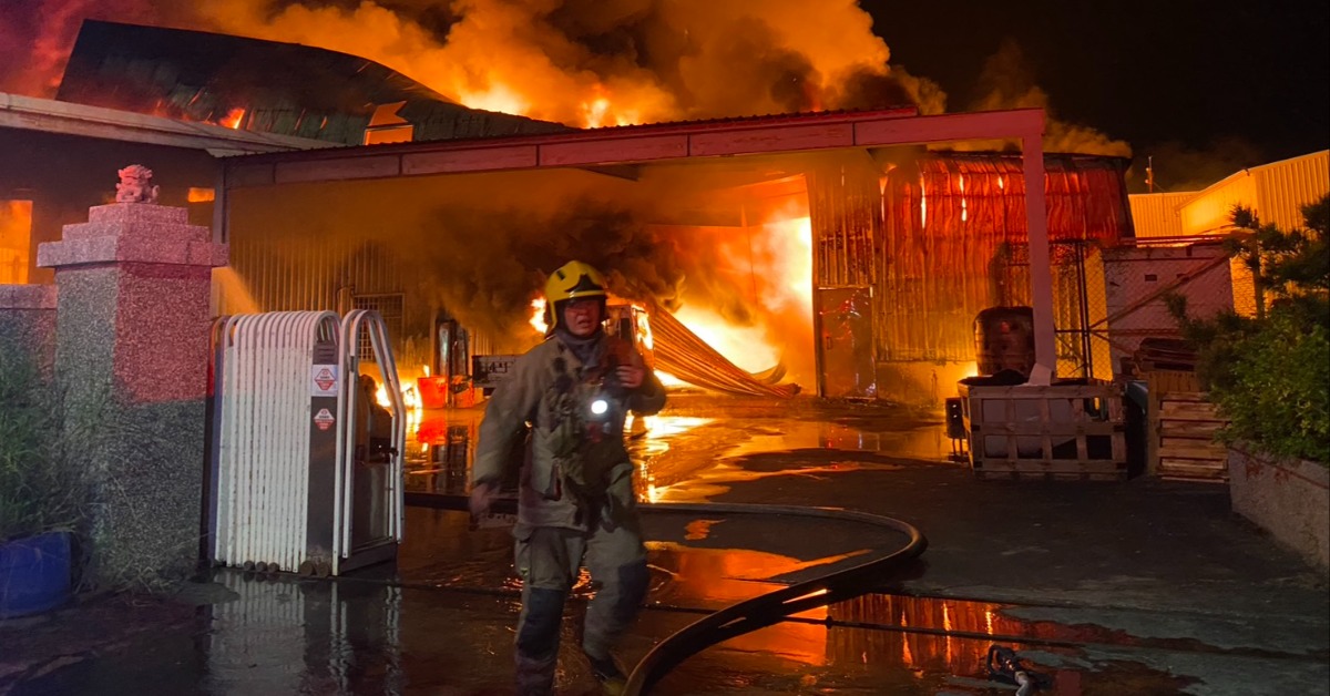 台南仁德區一處工廠於今(28)日21時35分發生火警。(圖/翻攝畫面)