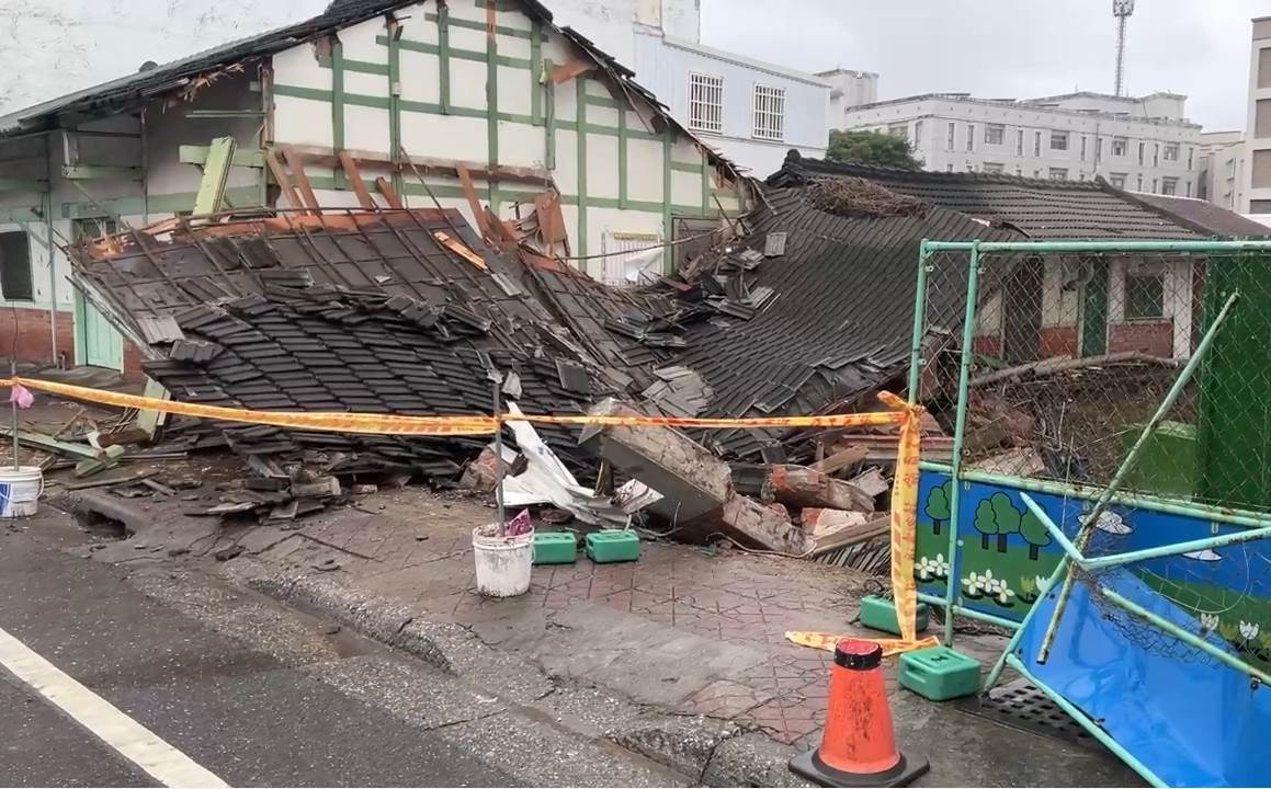 台東市更生北路一棟屋齡約70年瓦房,因連日大雨中斷地基作業,未料雨勢導致土質流石,老房瞬間倒塌,所幸事故無人傷亡。