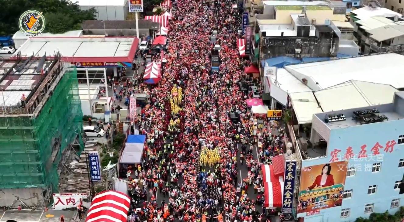 白沙屯媽祖結束短暫休息後,在萬人空巷街道緩緩走向北港朝天宮,沿途不斷傳來信眾「我愛媽祖」、「媽祖我愛你」歡呼聲,場面溫馨又熱鬧。而從空拍畫面視角,可見原本幾乎6車道寬的街道,被滿滿的信眾佔據,畫面相當震撼。