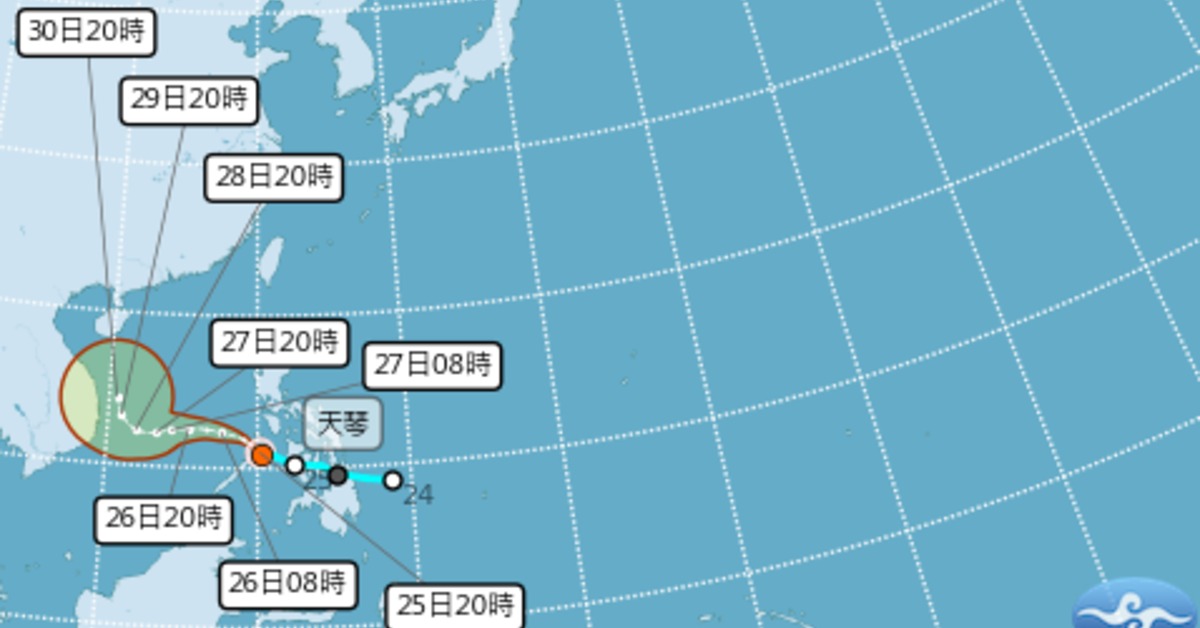 今年第27號颱風天琴今(25)晚生成了,最新路徑曝光,預估將一路向西,往中南半島移動。