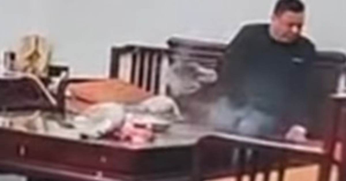 使用瓦斯要注意遠離熱源!一名男子將罐裝瓦斯放在泡茶桌上,結果泡茶倒熱水時不小心淋倒瓦斯罐,導致罐子瞬間爆炸冒出白煙。