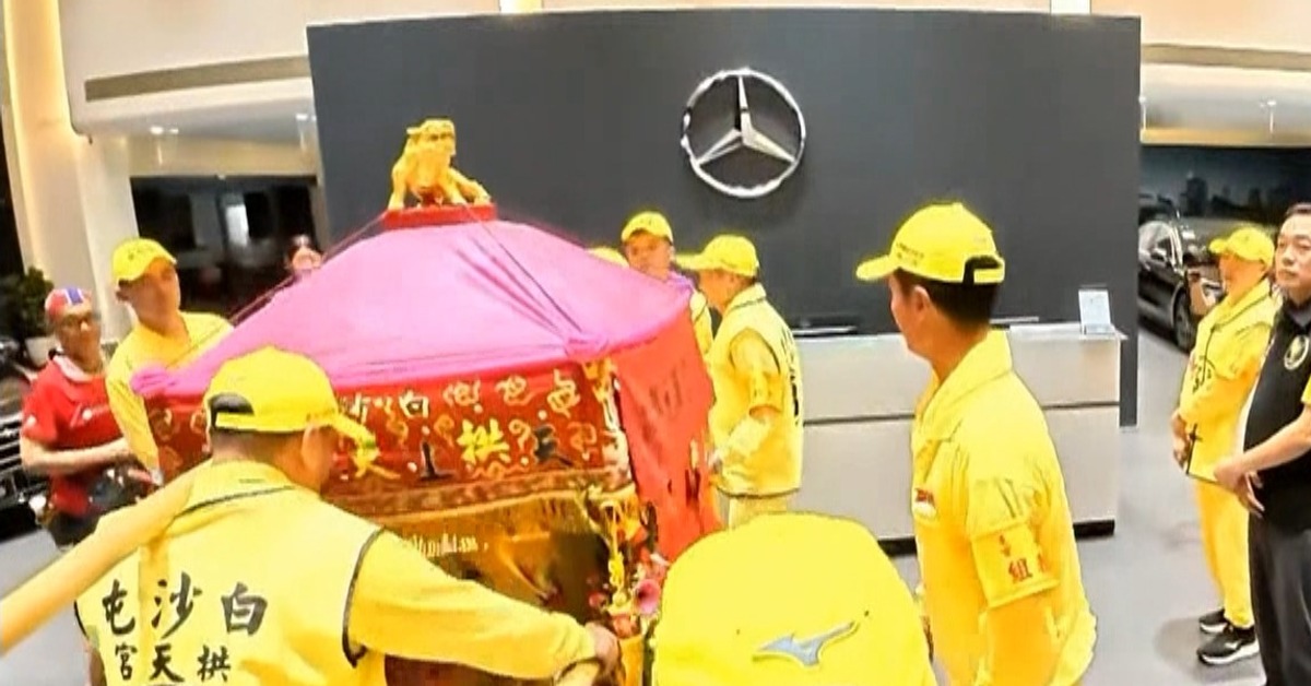 白沙屯媽祖進香路線不固定,想停哪就停哪,不過已經連續兩天,都停駐駕在車廠,昨天晚間駐駕在彰化大村賓士車廠過夜,前一天,更是11度停在TOYOTA展示中心。